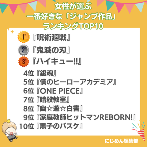 【動漫討論】《週刊少年Jump》人氣漫畫男女榜單Top10出爐!你的本命漫畫上榜了嗎? | ANIHK 專欄 | ANIHK