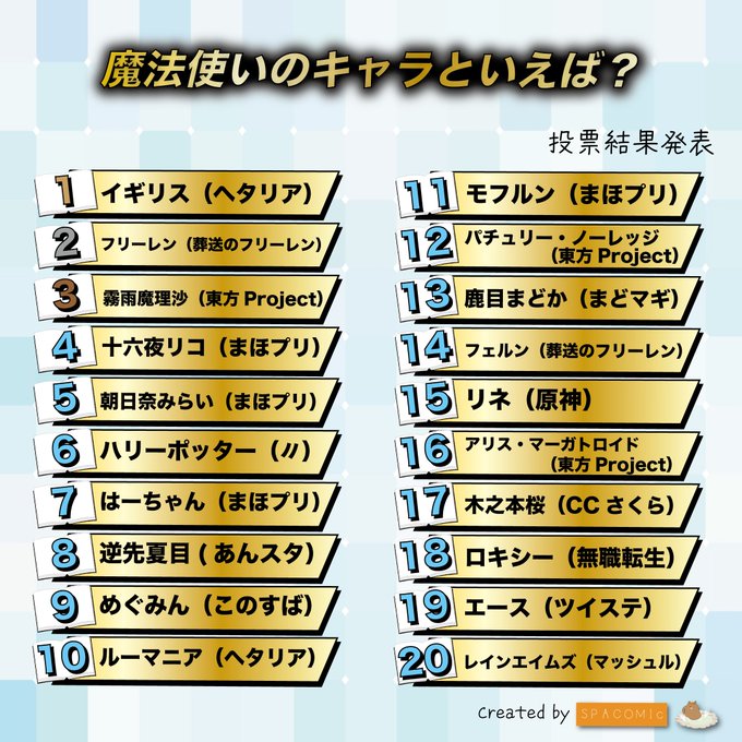 最近小編就發現一份由「スパコミック!!」舉辦的投票,主題就是「魔法使いのキャラといえば?」(說到魔法師角色會想到誰?) 這根本就是一場橫跨不同作品、次元的魔法師人氣大比拚嘛!究竟在網友心中,哪位角色才是魔法師的代名詞呢?快來看看這份榜單吧!