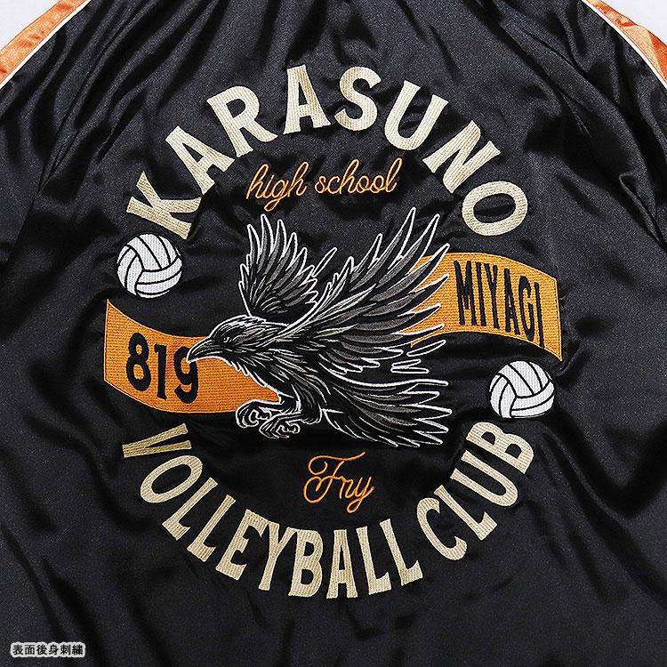 刺繡夾克背面有以烏野高中為主題的設計,胸前則以刺繡重現學校標誌。